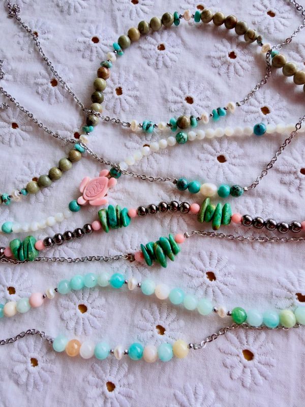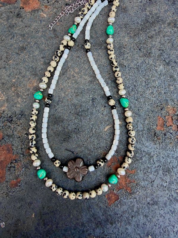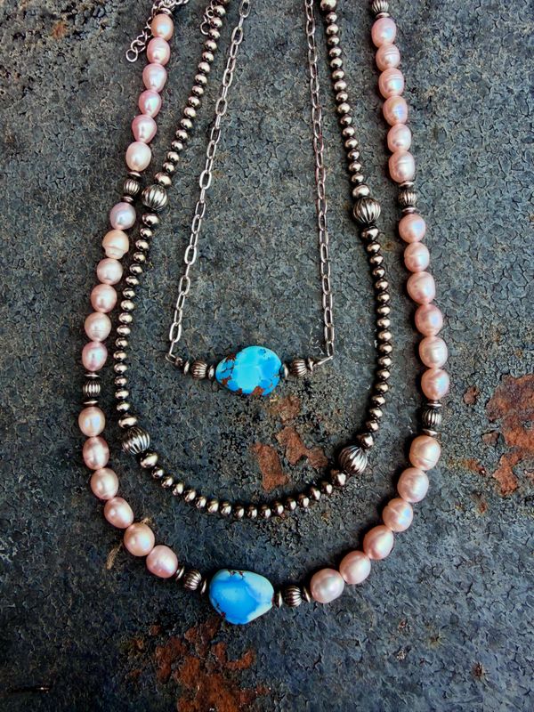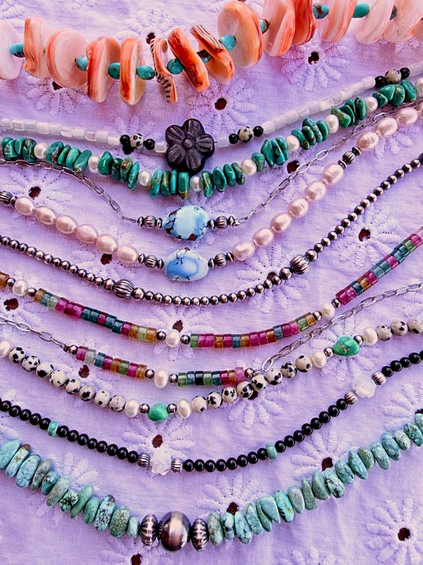 All of my pieces are handmade in Central Montana using high-quality stainless steel, which is both tarnish-resistant and hypoallergenic. I only use premium stones, and the machine made pearls are made from sterling silver, ensuring top-notch quality.